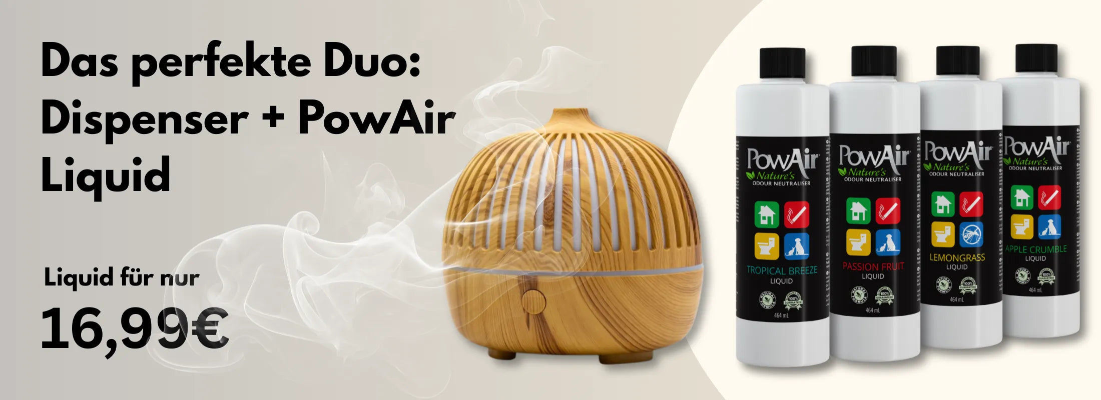Der PowAir Harmony Mist Diffuser vereint Geruchsbeseitigung und Raumduft in einem Gerät – für frische, saubere Luft und ein entspanntes Umfeld.